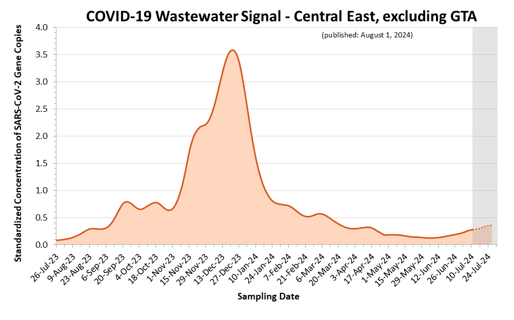 PHO is currently collaborating with the Ministry of Health and the Public Health Agency of Canada to explore options for reporting wastewater testing data for the next respiratory season.